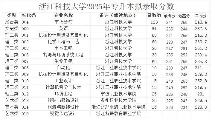 浙江科技大学(本部)的录取分数线也基本都在240左右。