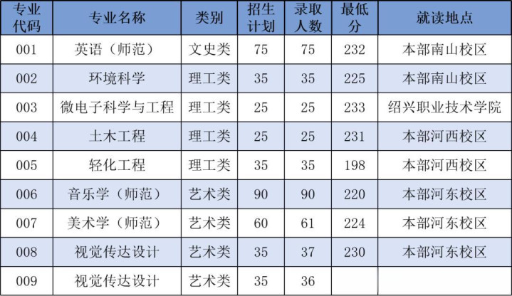 比如绍兴文理学院现在在浙江专升本招生院校中属于第二梯队,录取分数线基本在220分左右。