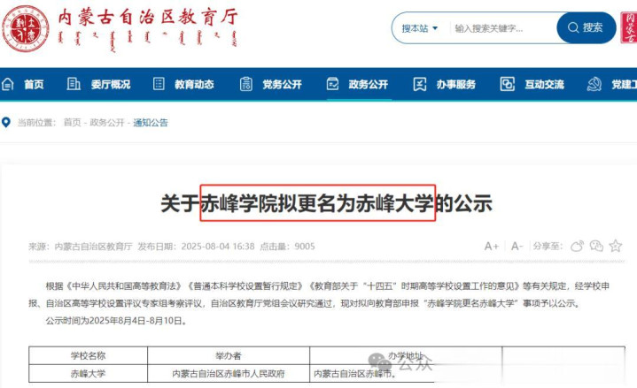 赤峰学院拟更名为赤峰大学