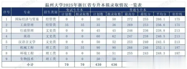 而第一招生梯队的温州大学专升本的录取分数线,普遍在240分以上。