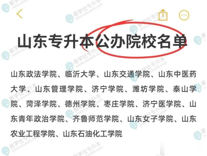 比如山东专升本公办院校中就只有2所大学。